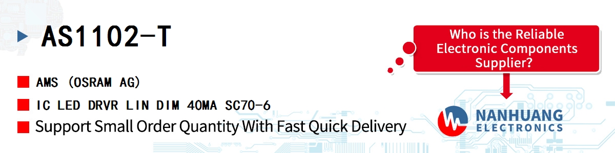 - AS1102-T AMS, IC LED DRVR LIN DIM 40MA SC70-6, Integrated Circuits (ICs)~PMIC - LED Drivers